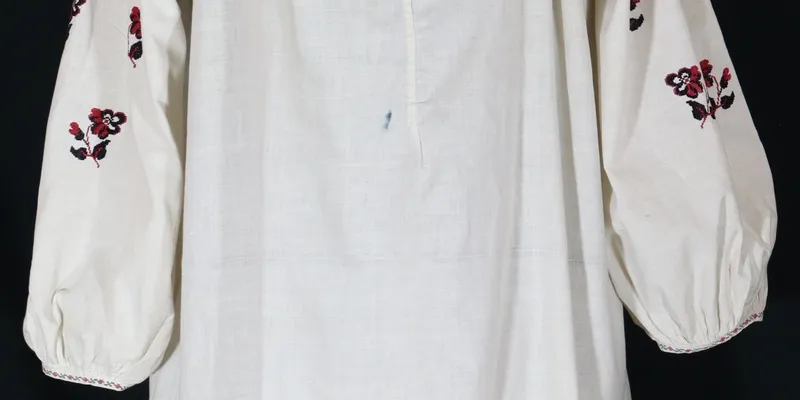- Factory weaving, machine sewing, hand embroidery, surface embroidery, counted surface embroidery, "cross-stitch" oblique, auxiliary decorative seams, "puffs"