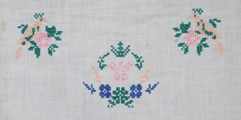 - Factory weaving, hand embroidery 'diagonal cross-stitch,' 'single prutik' openwork