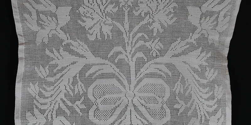 Rushnyk made from white calico, with edges decorated with two narrow and one wide band of openwork featuring a stylized floral ornament (flowers and leaves), and white lace at the ends. In one corner, the letters 'MК' are embroidered in red threads. Provenance: The rushnyk belonged to Olena Valentynivna Korotkova (maiden name Morozova), who descends from the Kudashev princely family. The Kudashev family has been known since the early 17th century. Princess Olha Yevhenivna Kudasheva (Morozova) was the daughter of Prince Yevhen Oleksandrovych, an honorary justice of the peace of the Sumy district; granddaughter of Prince Oleksandr Volodymyrovych, a major general and landowner in Khorol County, Poltava Governorate (as of 1898); and niece of Princess Yuliya Oleksandrivna, wife of Professor L.L. Hirshman; she was the grandmother of Olena Valentynivna Korotkova.
