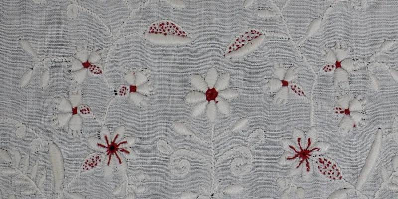 - Hand weaving, hand embroidery, flat stitch, stem stitch