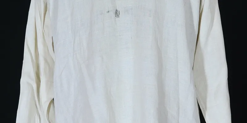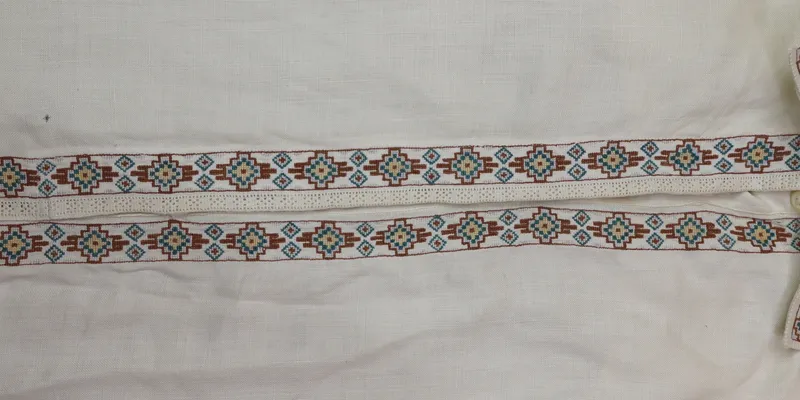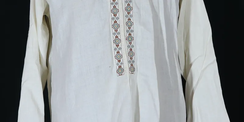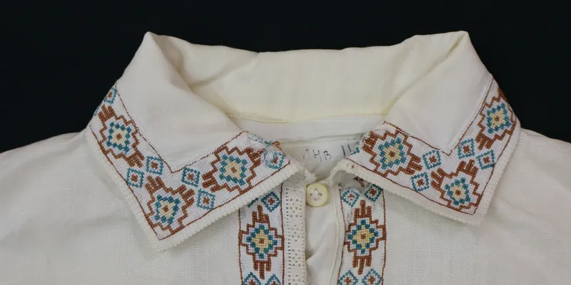 Men's shirt made of white linen canvas. Collar and sleeves embroidered.