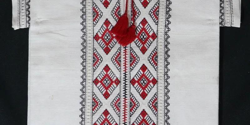 - Factory weaving, machine sewing, 'satin stitch,' 'shtapivka,' 'grain stitch,' openwork netting
