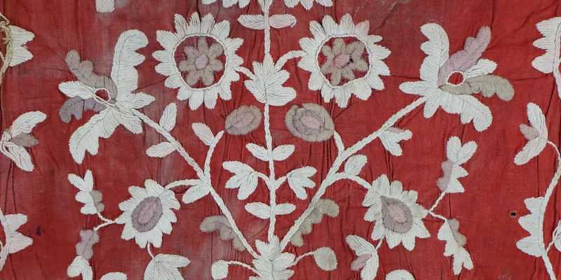 - Factory weaving, hand embroidery, satin stitch