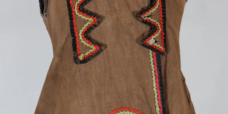 Korsetka made of brown factory fabric, with 5 tails. Lined.