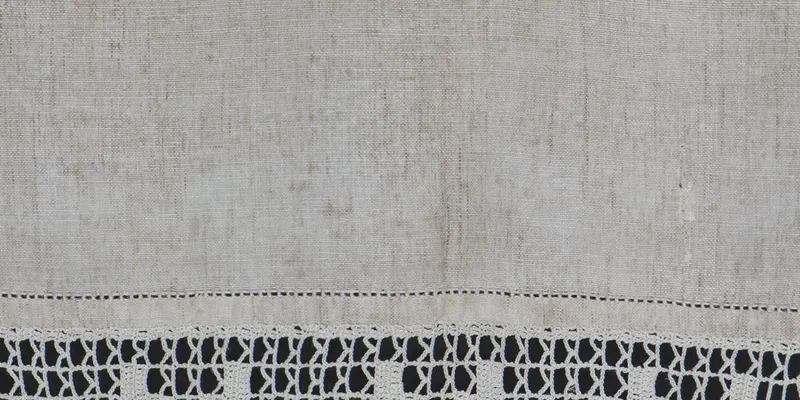 - Bleached homespun canvas, cotton thread, lace